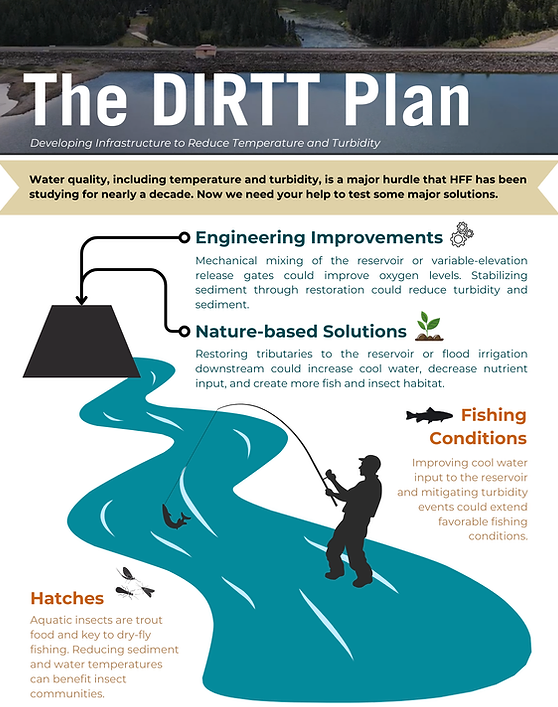 - The DIRTT plan is a new effort to develop infrastructure to reduce temperature and turbidity in Island Park Reservoir and the Henry’s Fork. We will be using natual and engineered means to accomplish the following: