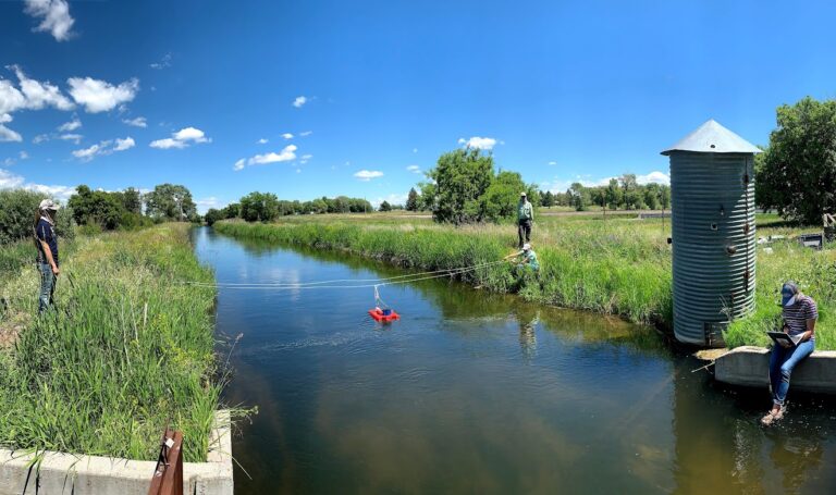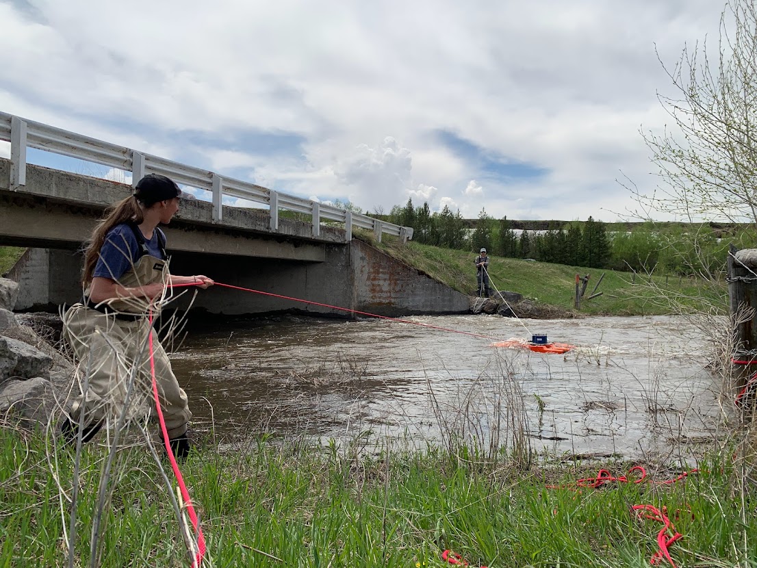 HFF previously measured streamflow in smaller creeks and streams with a wading rod and tape measure. But measuring streamflow in a river as deep and wide as the mainstem Henry’s Fork required heftier equipment and some creativity. As such, HFF partnered with Fremont-Madison Irrigation District (FMID) in 2018 to purchase an Acoustic Doppler Current Profiler (ADCP). Per the arrangement, FMID purchased the $30,000 ADCP and loans it to HFF. An intern from Colgate named the ADCP Matilda in 2018 after the children’s book character who has superpowers and can be stubborn sometimes.